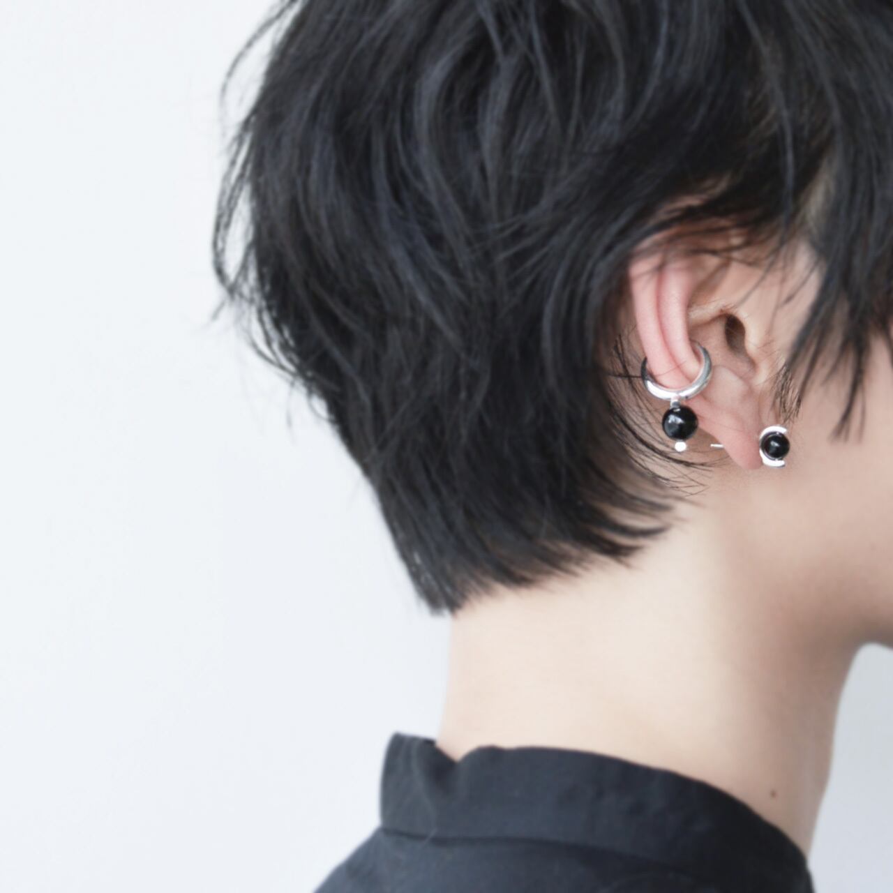 シルバーとオニキスのピアス。