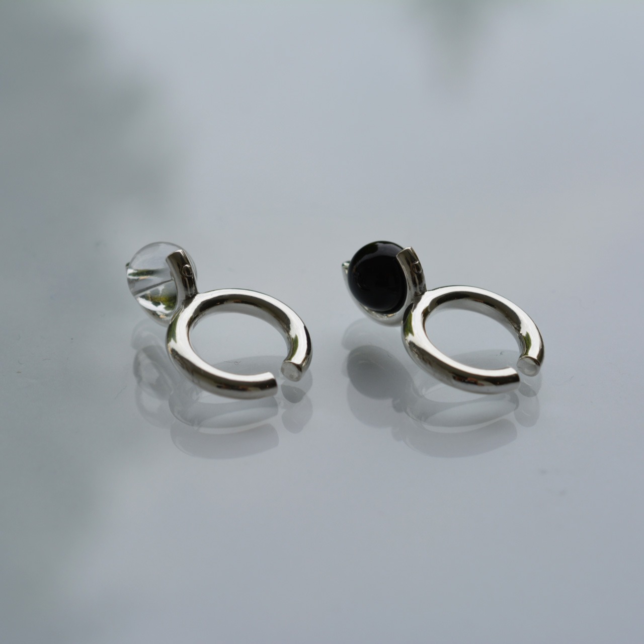 シルバーとクリスタル(水晶)のイヤーカフ。