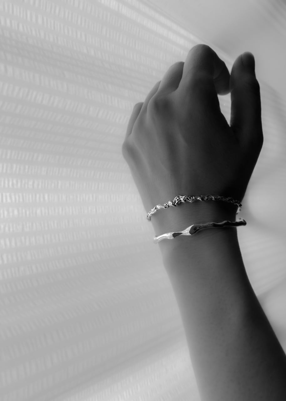 細かくキラキラと輝く華奢なリング「ripple」のバングルです。